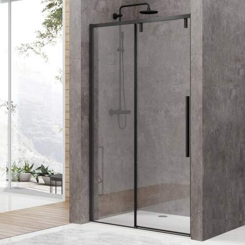 Van Rijn ST06 Softclose schuifdeur 1170-1190 x 2000 helder glas 8 mm incl. glasbehandeling, zwart, en greep
