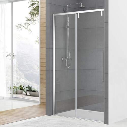 Van Rijn ST06 Softclose schuifdeur 1180-1190 x 2000 helder glas 8 mm incl. glasbehandeling, chroom, en greep. Combineren met wand naar keuze.