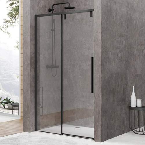 Van Rijn ST06 Softclose schuifdeur 1180-1190 x 2000 helder glas 8 mm incl. glasbehandeling, zwart, en greep. Combineren met wand naar keuze.