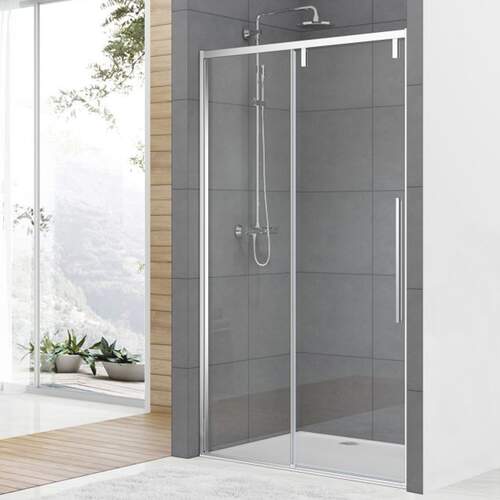 Van Rijn ST06 Softclose schuifdeur 1370-1390 x 2000 helder glas 8 mm incl. glasbehandeling, chroom, en greep