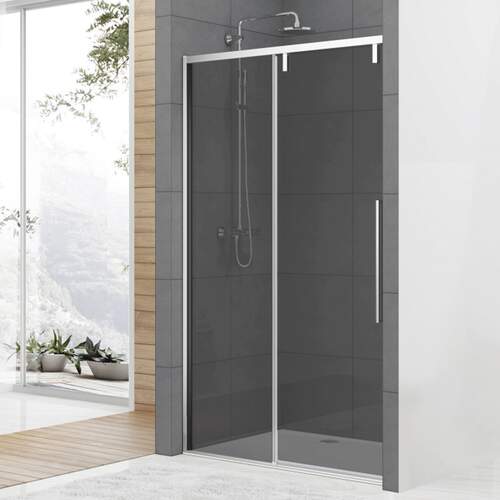 Van Rijn ST06 Softclose schuifdeur 1570-1590 x 2000 grijs rookglas 8 mm incl. glasbehandeling, chroom, en greep
