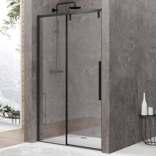 Van Rijn ST06 Softclose schuifdeur 1570-1590 x 2000 helder glas 8 mm incl. glasbehandeling, zwart, en greep