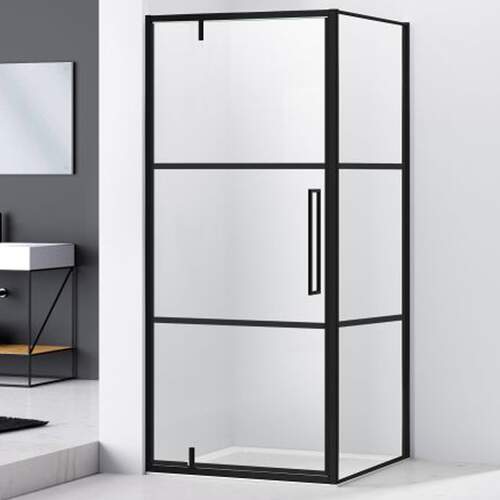 Van Rijn ST04 Hoekcabine Douchecabine deur (980-990) x wand (970-980) x 2000mm 6 mm Helder glas incl. Glasbehandeling Zwart muurprofiel Omkaderd 3 vaks