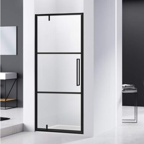 Van Rijn ST04 Nisdeur zwart incl. glasbehandeling 6mm glas, 2 lijnen zeefdruk L/R draaiend 880-900 x 2000