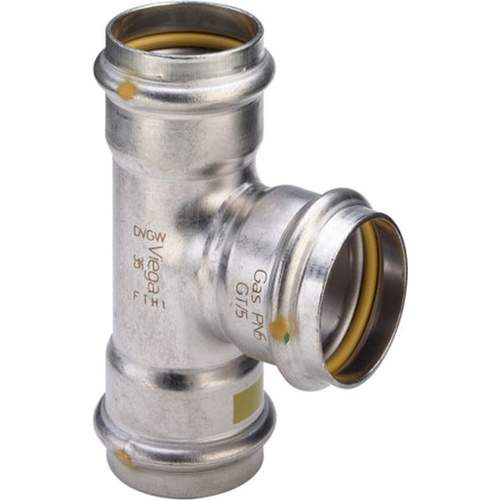 Viega Sanpress Inox Gas t-stuk 22 mm, rvs, met sc-contur