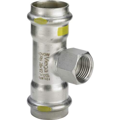 Viega Sanpress Inox Gas t-stuk verlopend, 28 x 3/4" x 28 mm, pers x binnendraad x pers, rvs