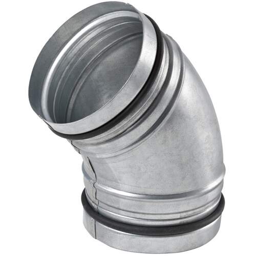 Wikkelvouwbuisbocht van gegalvaniseerde staalplaat met rolring-afdichtingssysteem.