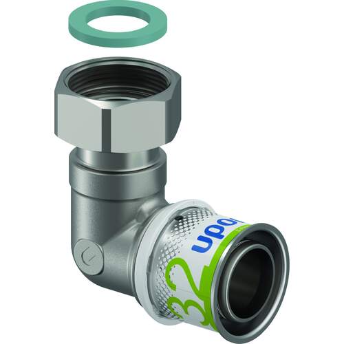 Uponor S-Press Plus kniekoppeling met wartel 32 x G1", pers x binnendraad, messing, voor aansluiten monoblock warmtepompen