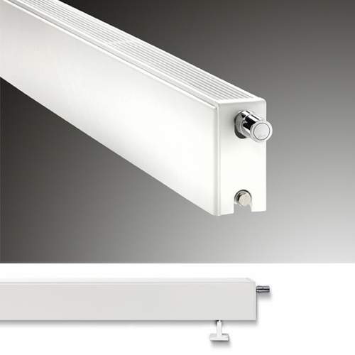 De Flat-Plint-Line is een horizontale plint-paneelradiator met een decoratieve vlakke voorplaat, zijbekledingen en design lijnrooster.