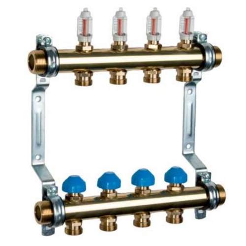 Watts vloerverwarmingsverdeler 9-groeps messing 1" incl. debietmeters