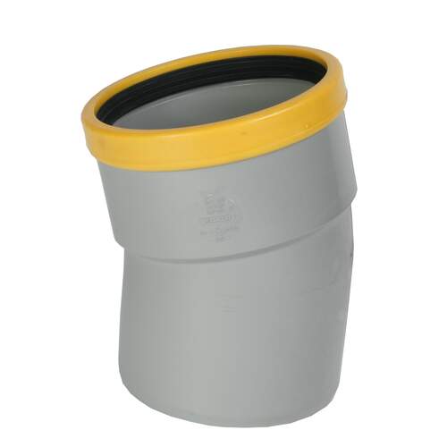Wavin Wafix PVC bocht 15° 125 mm SN8 mof/spie met manchet grijs/goud