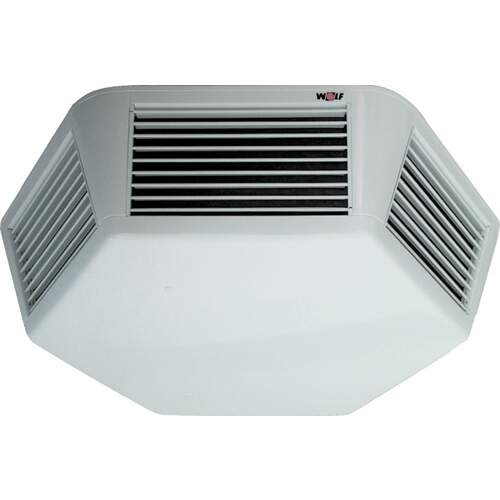 Deze Wolf luchtverhitter TLHD is een TopWing plafondunit voor verwarmen en koelen met energiezuinige en traploos regelbare (0-10V) EC-motor met geluidsarme waaier.