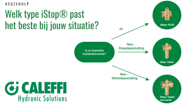 Caleffi heeft nu de lage temperatuur modellen van de iStop® vervangen door hoge temperatuur versies. Deze kleppen zijn 100% compatibel met bestaande toepassingen en vervangen de lage temperatuur-varianten zonder aanpassing. Dat maakt de keuze voor de installateur dus een stuk eenvoudiger.