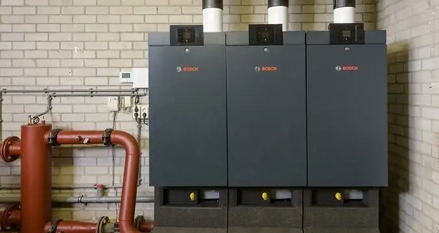 De Bosch Condens 7000 WP is een geavanceerde grootvermogen ketel. Ideaal voor grote gebouwen zoals appartementencomplexen, kantoren of scholen. Het toestel is zeer compact en beschikbaar van 50 tot 150 kW. Met de cascadesets kan 600 kW op een vierkante meter worden gerealiseerd: het is daarmee het meest compacte systeem op de markt. Daarnaast kent het toestel een ongekend korte installatietijd en heeft het een geringe hoogte. Een cascade-opstelling is niet hoger dan 1,60 meter. Daarmee past de ketel ook in lage stookruimtes.