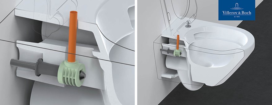 Bij wandclosets van Villeroy & Boch met TwistFlush spoeling, zoals de vernieuwde Architectura met verborgen bevestiging en het nieuwe Skyla wandcloset, werk je met het ViFix ophangsysteem. Het fijne van dit ophangsysteem is dat een groot gedeelte van het bevestigingssysteem al is voorgemonteerd. Zo kan het wandcloset direct worden geplaatst, zonder extra voorbereidende handelingen vooraf. Dat betekent dat je als installateur kostbare tijd bespaart op de montage.