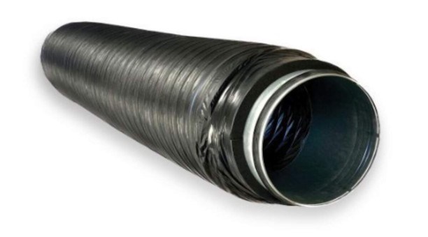 De opbouw van de demper bestaat uit een PVC binnenslang, daaromheen 25 mm Ecose isolatiewol en een buitenslang van PVC/aluminiumlaminaat. Deze combinatie zorgt voor effectieve geluidsdemping en goede thermische isolatie, zonder de prestaties van het ventilatiesysteem te beïnvloeden.
