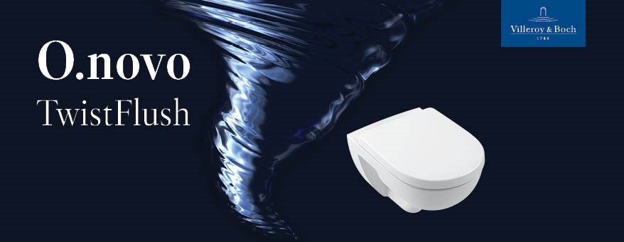De populaire O.novo toiletten van Villeroy & Boch zijn vernieuwd. Het toilet heeft een moderner design gekregen en is nu uitgerust met de innovatieve vortex spoeling TwistFlush. Daardoor heeft het closet geen spoelrand, het is waterbesparend, eenvoudig te monteren en schoon te maken.