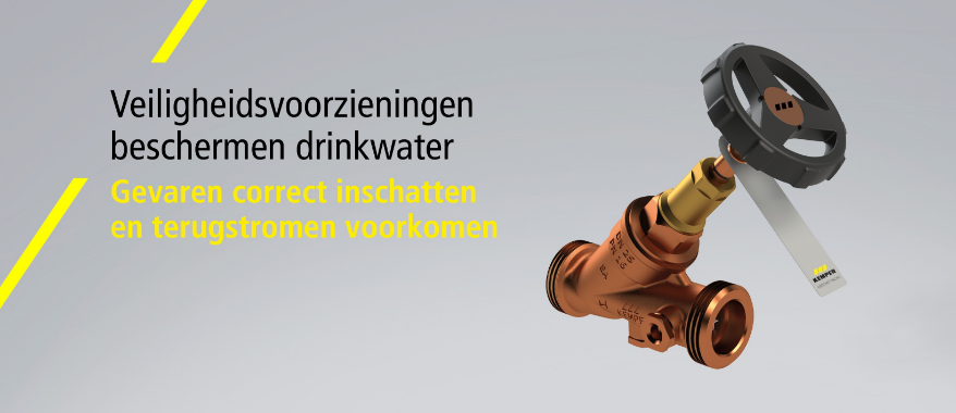 De technische maatregelen om ons 'belangrijkste voedingsmiddel' te beschermen zijn duidelijk vastgelegd in de regelgeving. In de dagelijkse praktijk dienen de wettelijke vereisten toegepast te worden op lokale omstandigheden, hetgeen vaak tot onduidelijkheden leidt. Er bestaat helaas geen veiligheidsvoorziening die geschikt is voor elke installatie met individuele lokale omstandigheden, specifieke vereisten qua waterkwaliteit en voor alle tappunten. Een specialist dient het gevarenpotentieel van de specifieke installatiesituatie te analyseren en evalueren. Vervolgens selecteert deze specialist een veiligheidsvoorziening die voldoet aan de respectievelijke vereisten. Dit kan een keerklep, een beluchter, een terugstroombeveiliging of ook een beveiligingstoestel zijn.